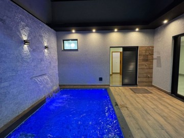 Piscina aquecida com led, cascata e hidromassagem