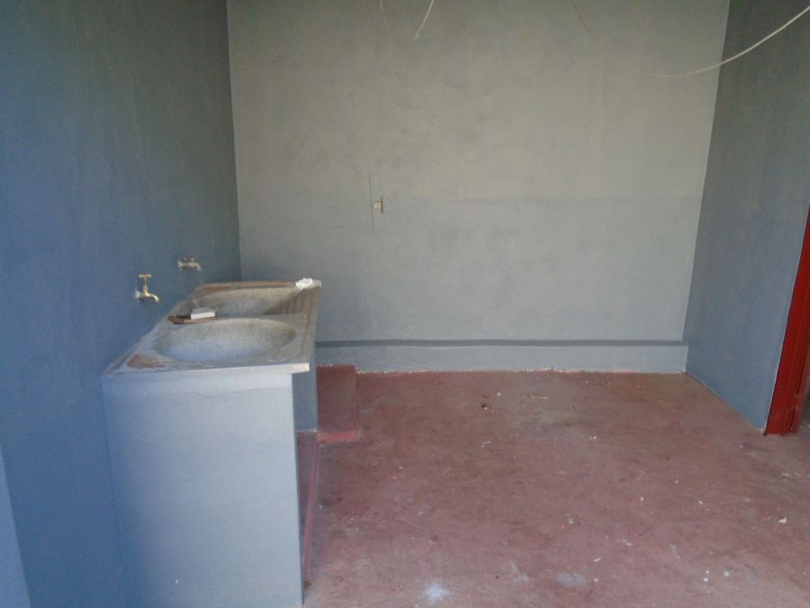 Casa com três quartos, 1 suite, sala, cozinha, garagem para 2 carros e uma área de lavanderia nos fundos.