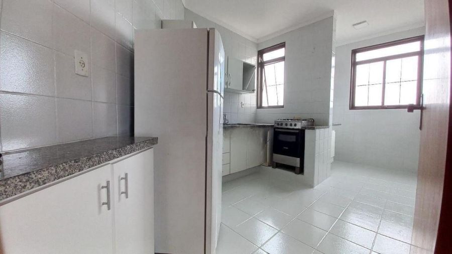 Apartamento mobiliado com armários planejados nos dormitórios, geladeira e fogão