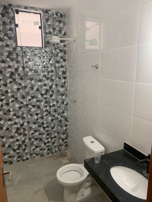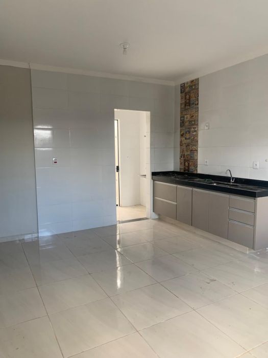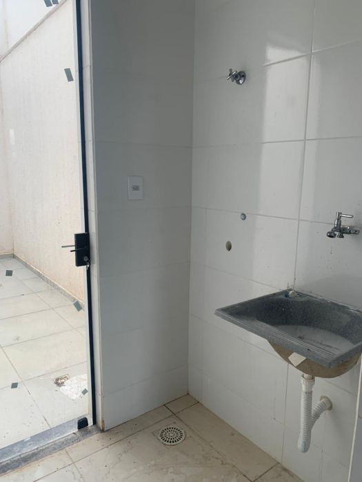 Sala, cozinha com armários, lavanderia, área externa, banheiro social, 1 vaga de garagem ( não coberta)